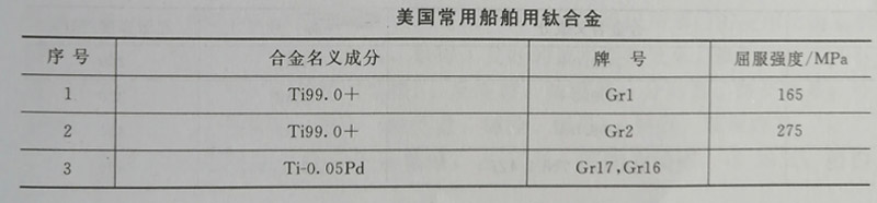 美國常用船舶用鈦合金