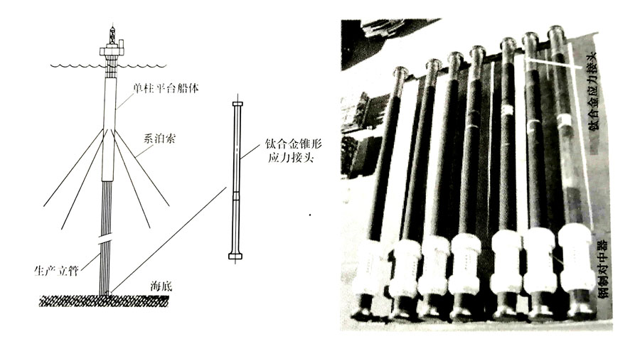 海上石油、天然氣開采用鈦主要有四大部件:隔水管、鉆管、錐形應力接頭和井下作業(yè)流送管(盤管)。