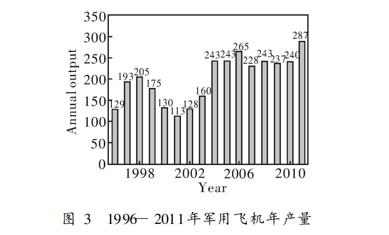 歐洲擁有世界領(lǐng)先水平的直升機(jī)制造技術(shù),多年來歐洲直升機(jī)一直占有50%以上的世界市場份額,每年鈦材用量約350.據(jù)預(yù)測,歐洲軍用戰(zhàn)斗機(jī)、教練機(jī)和軍用運(yùn)輸機(jī)將從2006年的86架增加到2011年的95架,鈦材用量也將從 2006年的539t,增加到2011年的648t。美國航空公司和俄羅斯航空企業(yè)都正在試圖向巴基斯坦、印度、馬來西亞和日本推銷更多的戰(zhàn)斗機(jī),競爭異常激烈。美國的公司非常想跟歐洲軍工企業(yè)進(jìn)行合作,共同開發(fā)新一代直升機(jī)和新一代的陸軍專用運(yùn)輸機(jī)。圖3示出了1996一2011年軍用飛機(jī)年產(chǎn)量。