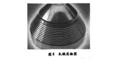 圖8是軋輥的實(shí)物照片, 可以看出:PSW三輥行星軋機(jī)的軋輥由10~20個(gè)變形區(qū)段組成的,每一個(gè)變形區(qū)段在瞬間完成變形一—定徑過(guò)程,最后由10~20個(gè)小變形區(qū)段組合成整體變形,完成整個(gè)變形過(guò)程,使道次變形率可達(dá)80%~95%以上,金屬的變形行為屬于點(diǎn)變形,與旋壓變形類似。