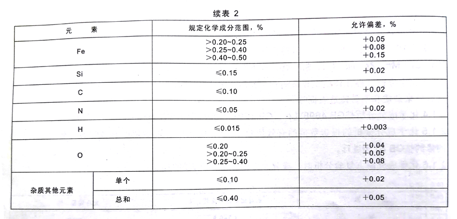 2.1.1 鑄造鈦及鈦合金化學(xué)成分應(yīng)符合表1的規(guī)定。
