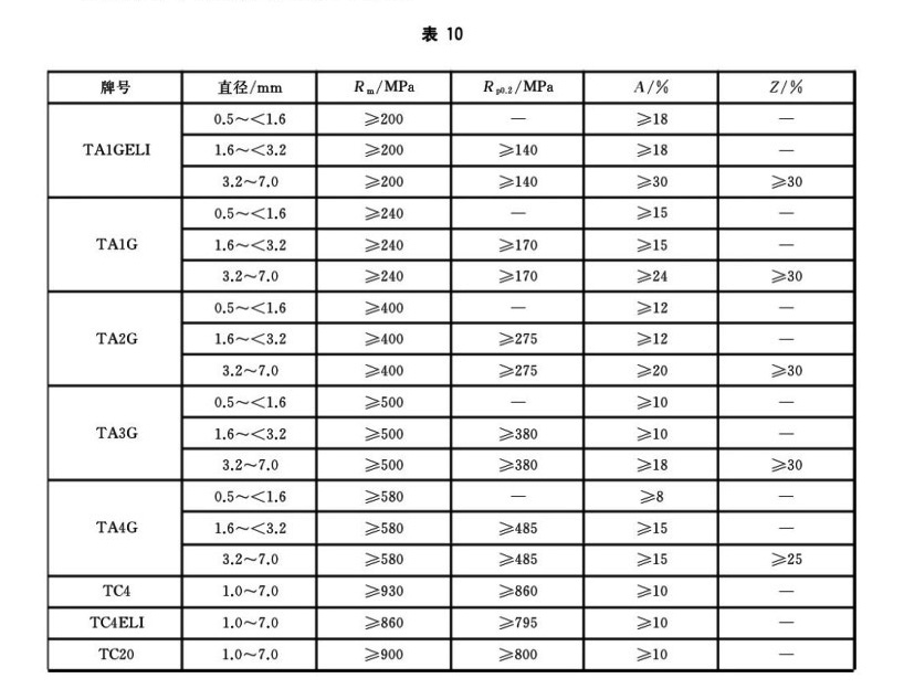 絲材的室溫拉伸性能應(yīng)符合表10的規(guī)定。