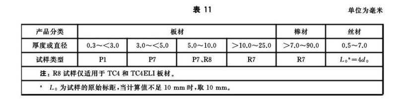4.3 室溫拉伸性能按GB/T228.1-2010進(jìn)行。試樣應(yīng)符合表11的規(guī)定。