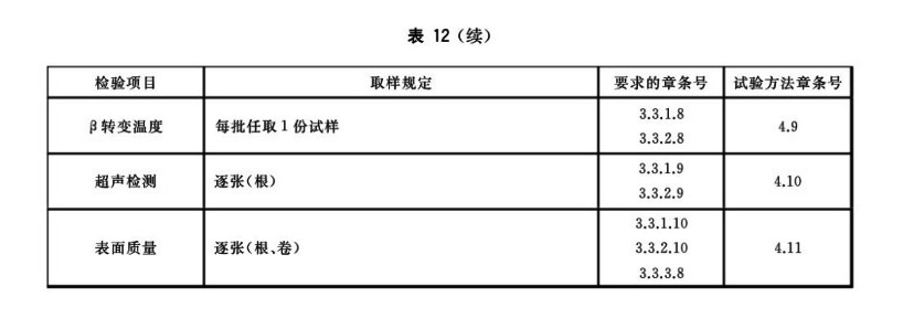產(chǎn)品的檢驗項目及取樣應(yīng)符合表12的規(guī)定。