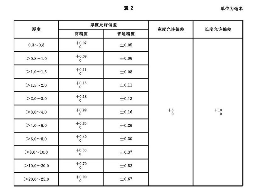 3.3.1.2.1 板材的厚度、寬度、長度允許偏差應(yīng)符合表2的規(guī)定。