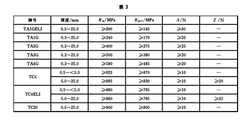 板材的室溫拉伸性能應(yīng)符合表3的規(guī)定。