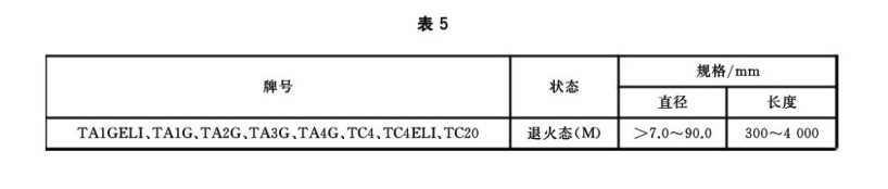 棒材的牌號、狀態(tài)及規(guī)格應(yīng)符合表5的規(guī)定。