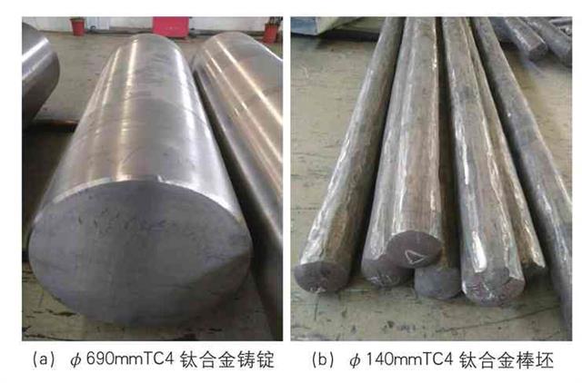 圖1 TC4鈦合金φ690mm鑄錠及φ140mm棒坯
