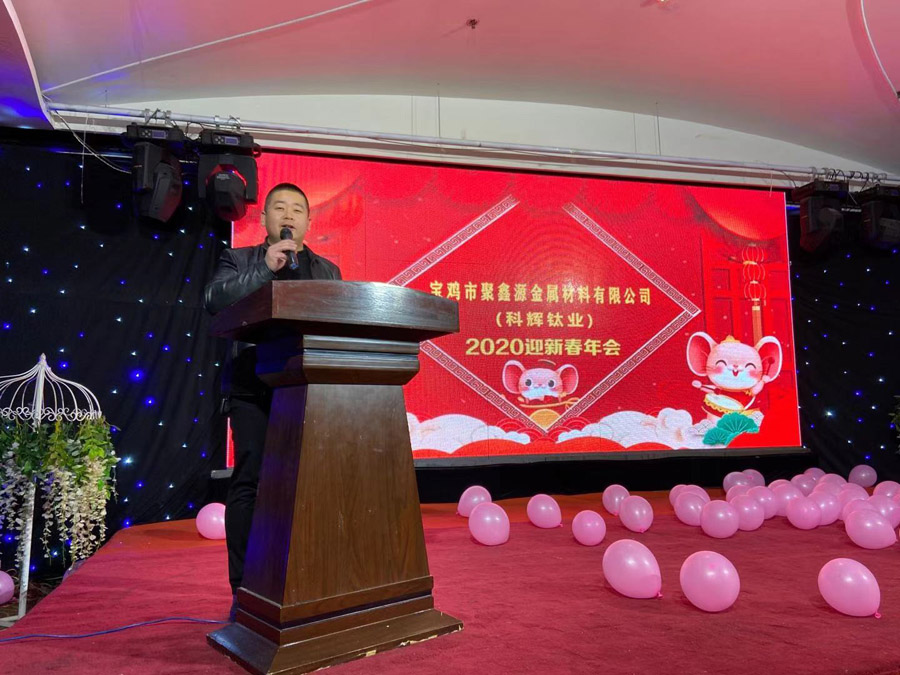 春節漸近,為使全體員工度過一個歡樂、祥和、平安的新春佳節,寶雞市聚鑫源金屬材料有限公司(科輝鈦業) 于2020年1月21日晚在寶雞隆重舉行迎新春年會。