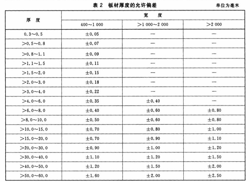 3.3.1 板材厚度的允許偏差應符合表2的規定,寬度和長度的允許偏差應符合表3的規定。