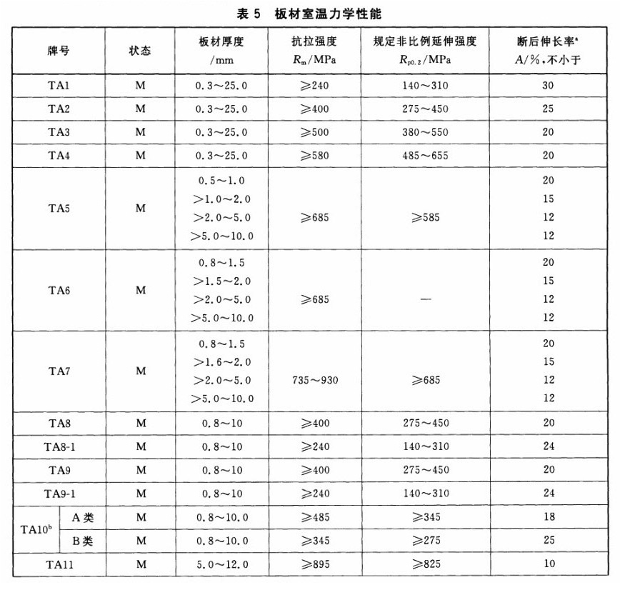 -------增加了TA8、TA8-1、TA9-1、TA11、TA15、TA17、TA18、TB5、TB6、TB8、TC4ELI等11個新的合金牌號及其產品尺寸允許偏差、力學性能、工藝性能等;