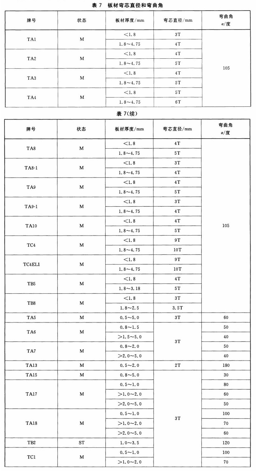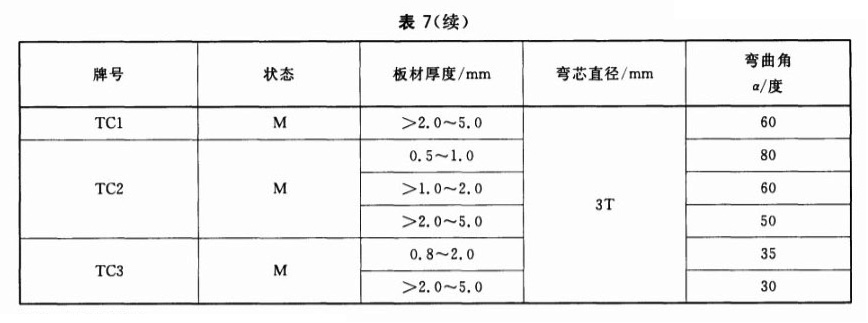 板材按表7規定的彎芯直徑和彎曲角經彎曲后,試樣的外表面不應產生開裂。