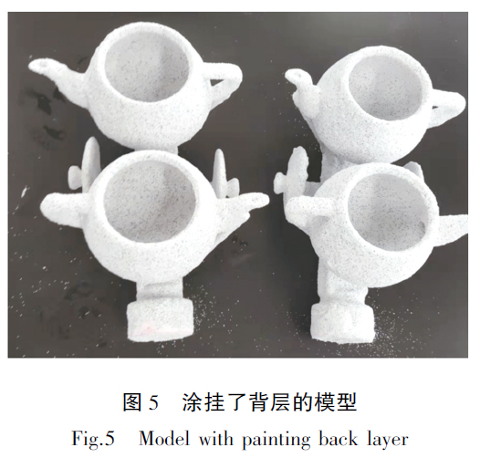 涂掛方法為,把打印好的模型浸入到溫度為60℃ ~70℃蠟液中,取出后翻轉轉勻蠟液。待蠟液凝固后用刮刀刮掉表面多余的蠟,再用紗布打磨表面,提高表面光潔度,并在掛漿之前再通過洗蠟的方式進一步提高漿料與模型之間的附著力。