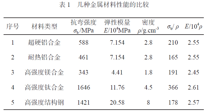 鈦合金材料主要有強度高、耐腐蝕、耐高溫、透聲、無磁、抗彈性等優點。按照不同位置的使用可以分為艦船殼體用鈦合金、動力工程用鈦合金和船機用鈦合金。根據其特性可以 分為可焊結構鈦合金、高強度鈦合金、耐熱鈦合金等。通過幾種金屬材料的比較,分析鈦合金的優缺點,如表1 所示。