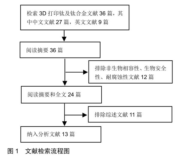 作者應用計算機檢索中國知網、萬方數據庫,檢索時間為1980年至2018年1月,檢索關鍵詞為“3D打印;選區激光熔化;電子束熔化;選區激光燒結;SLM;EBM;SLS;鈦;鈦合金;Ti-6Al-4V;耐腐蝕;生物相容性;3D printing;biocompatibility;selectivelaser melting;selective laser sintering;electron beammelting”等。