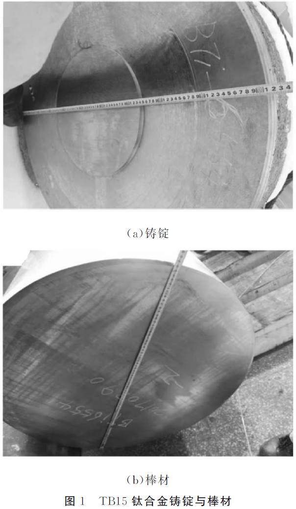 雖然目前對該合金做了較多的研究,但均以小規格棒材研究為主,對大規格棒材的研究鮮有報道,故本文選取直徑為750mm的超大規格TB15棒材,結合該合金的生產制造工藝,并制定合理的熱處理制度,以實現該合金強塑性的合理匹配,為制備大型飛機結構件及重型直升機結構件打下堅實基礎,進而推動航空工業發展。