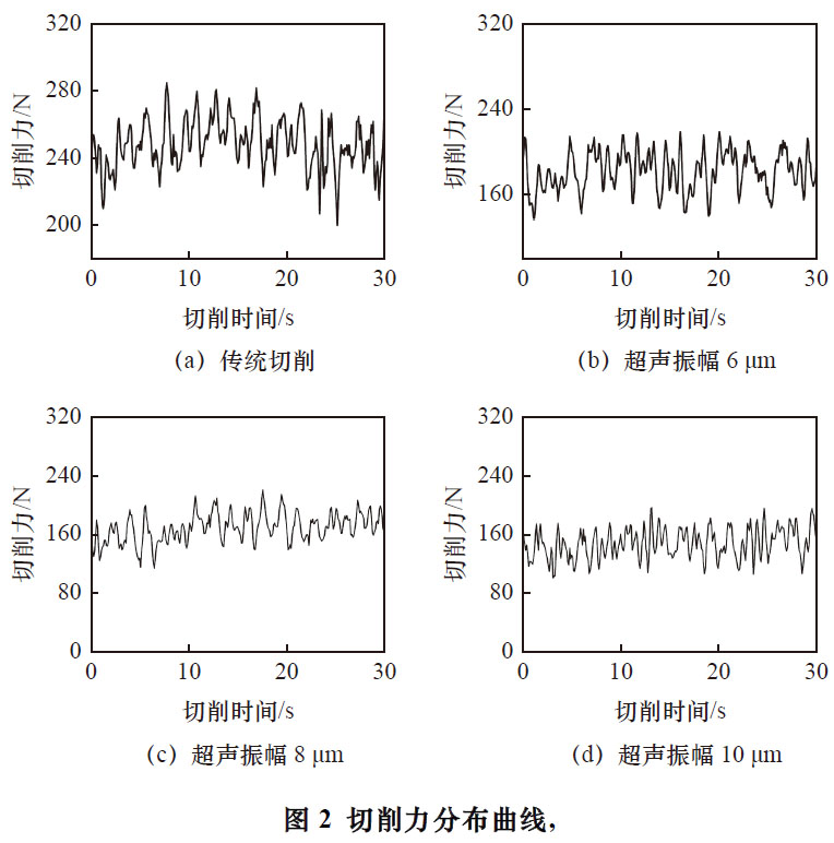 試驗(yàn)首先對(duì)比超聲切削與傳統(tǒng)切削的加工性能,并進(jìn)一步采用單因素試驗(yàn)法研究不同的超聲振幅(6 μm、8 μm、10 μm)對(duì)TB9 鈦合金削性能的影響。