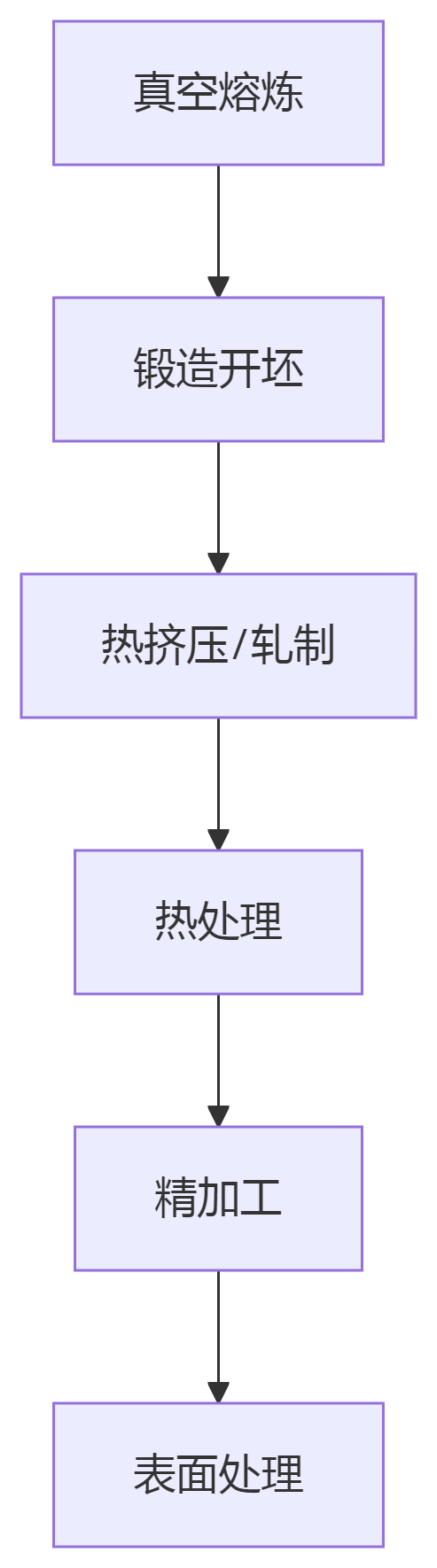 鈦棒:三次VAR熔煉 → β相區模鍛 → 固溶時效
